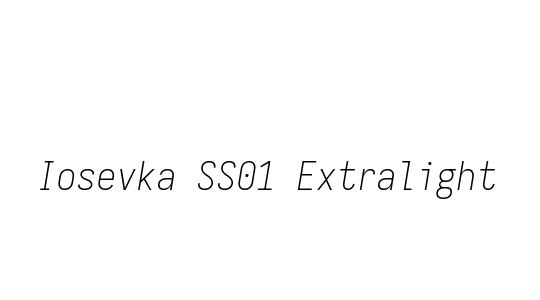 | 字体名称: | Iosevka SS01 Extralight | 所属分类: | |